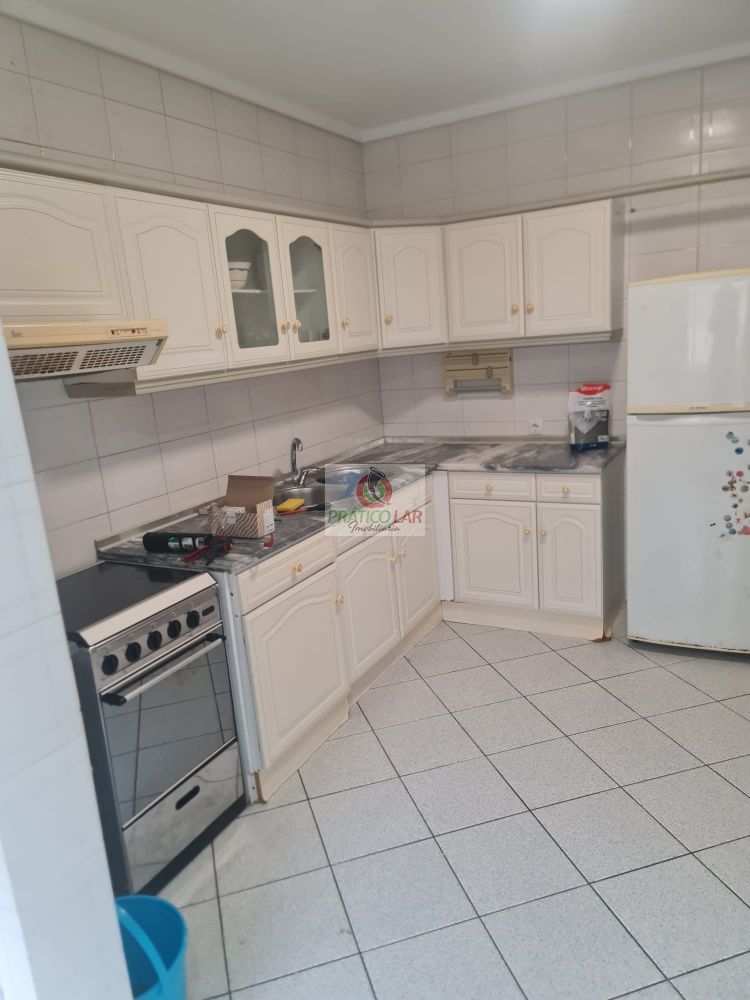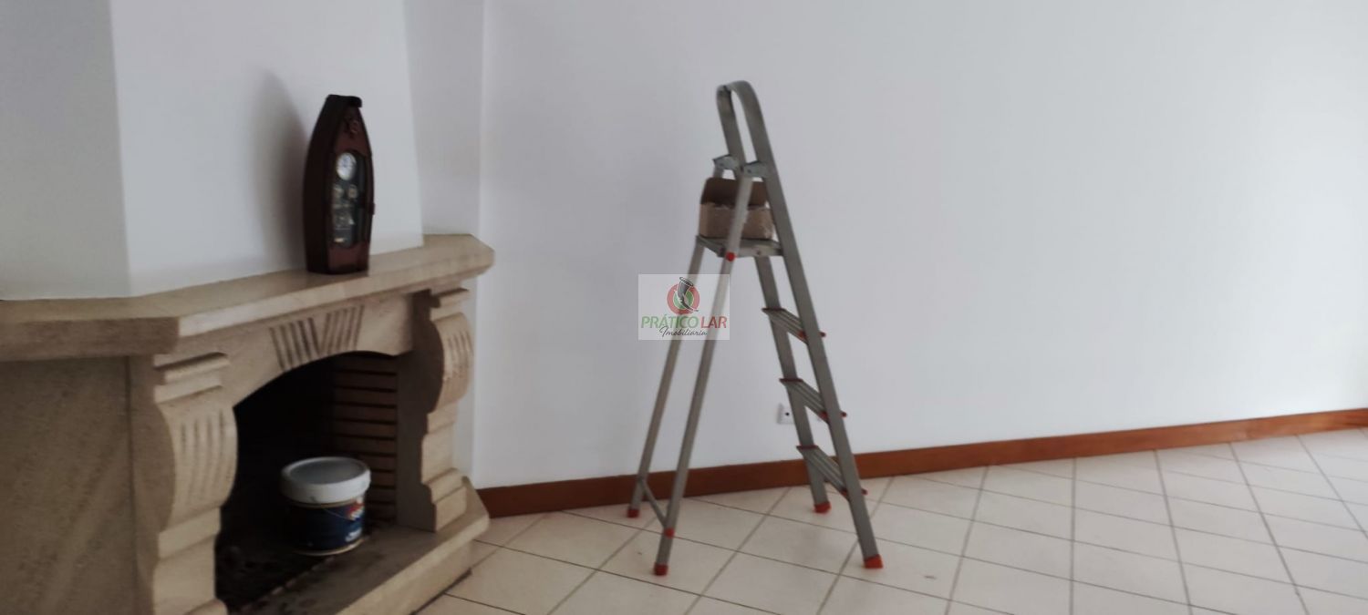 Sala com lareira e varanda, dois quartos com roupeiro embutido, 1 wc com banheira, despensa, marquise e  cozinha equipada  com esquentador, fogão, exaustor, frigorifico.